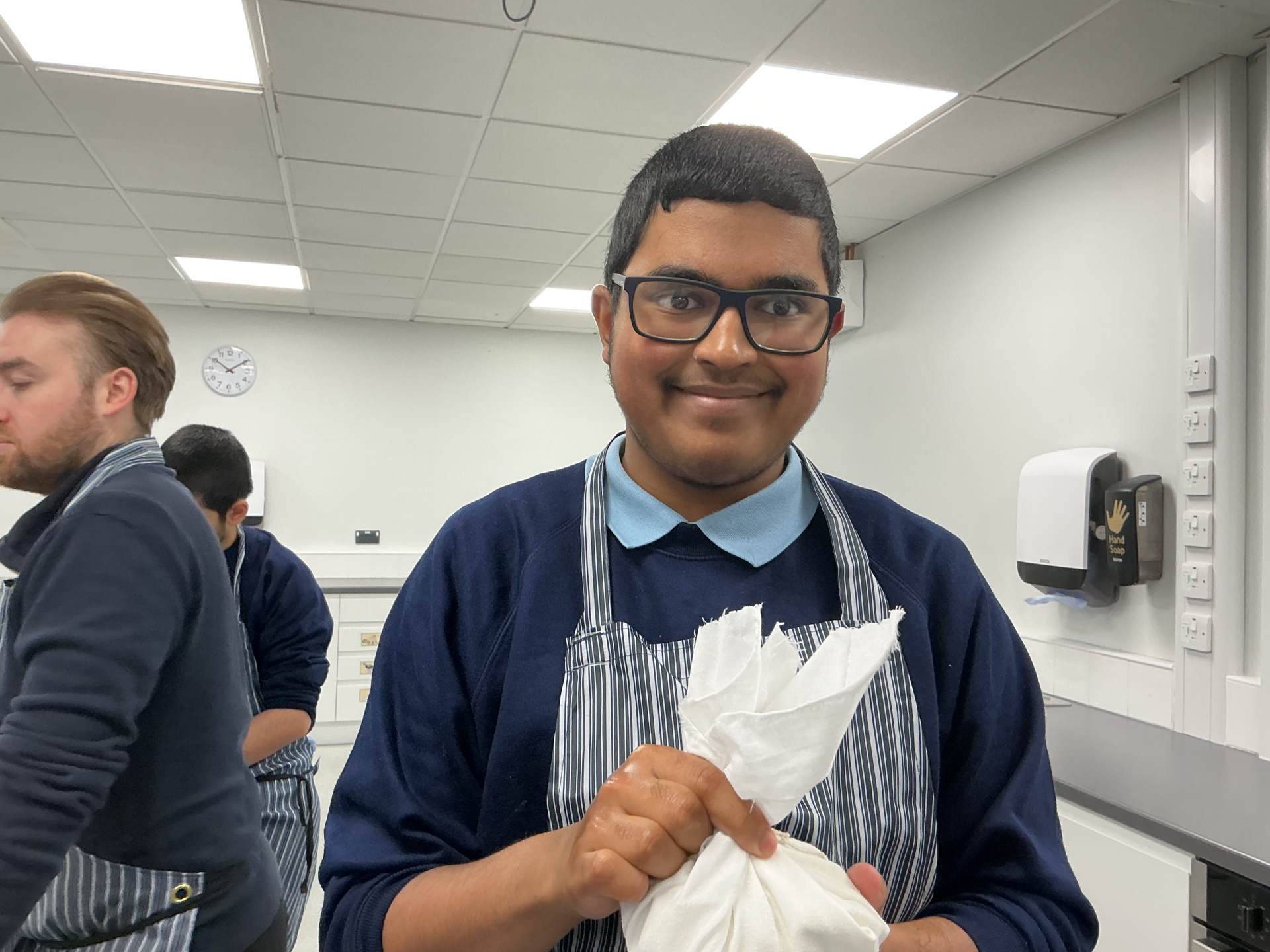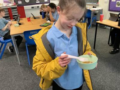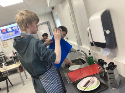 Students made rag puddings (a local Oldham food tradition) the old-fashioned way using cloth and steaming them. We also tasted a rare Lancashire delicacy, Vegan Black Pudding. Some students really enjoyed it, others were not so keen but well done for trying something new. We invited staff to sample our cooking. Everyone enjoyed it.