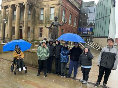 The recent rain did not deter CL3 from exploring Oldham landmarks, students visited the old town hall, where Winston Churchill once stood as an MP for Oldham, and another local heroine Annie Kenney, a suffragette.