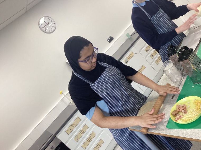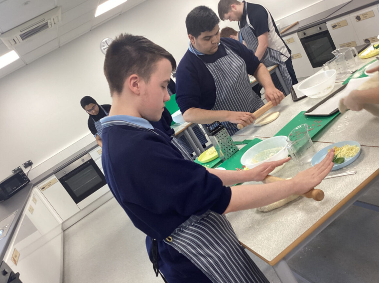 This term in food it is all about Fake Away, the pupils have been researching local take away options and have been making their own cheaper, healthier versions in class. So far we’ve made pizza, practicing our weighing, measuring and kneading. Last week we made chicken strips, some classes even pushed themselves to make a Katsu curry sauce from scratch to go alongside! They have demonstrated excellent hygiene and understanding of how to judge when meat is cooked and safe to eat.